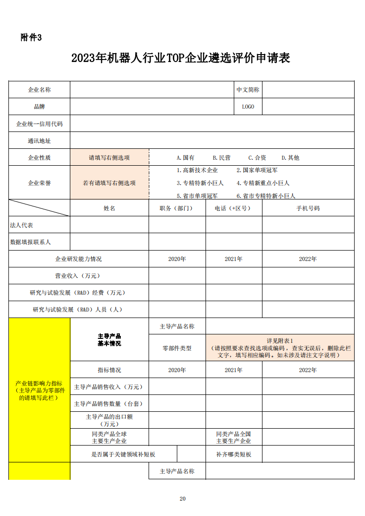 “十四五”以来,在国家政策的大力支持和企业的共同努力下,我国机器人产业蓬勃发展,创新能力不断增强,涌现出一批具有竞争优势和发展潜力的优质企业。为贯彻落实《“十四五”机器人产业发展规划》(工信部联规〔2021〕206 号)要求,推动企业加强专业化差异化发展,锻长板补短板,不断培育和壮大具有生态主导力和核心竞争力的机器人优质企业,拟开展中国机器人行业TOP企业遴选评价工作。