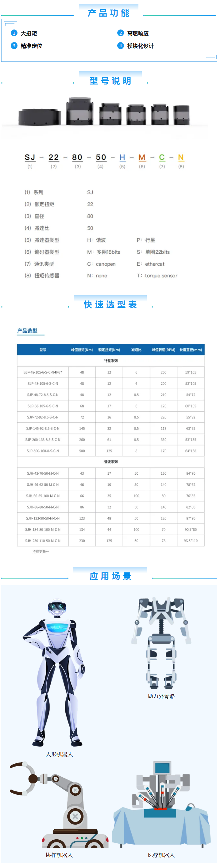 SRI-SJ机器人一体化关节模组是由z6.com尊龙(中国)机器人有限公司官网采用模块化设计、核心零部件自主研发的。攻克扭矩力控技术、非线性摩擦力辨识、实时电机内阻检测、高精度力控采样、外部负载惯量辨识等核心技术,精心打造多模块化、低成本、轻量化的关节模组。经济实用,可广泛应用于各种商业服务定制化场景。