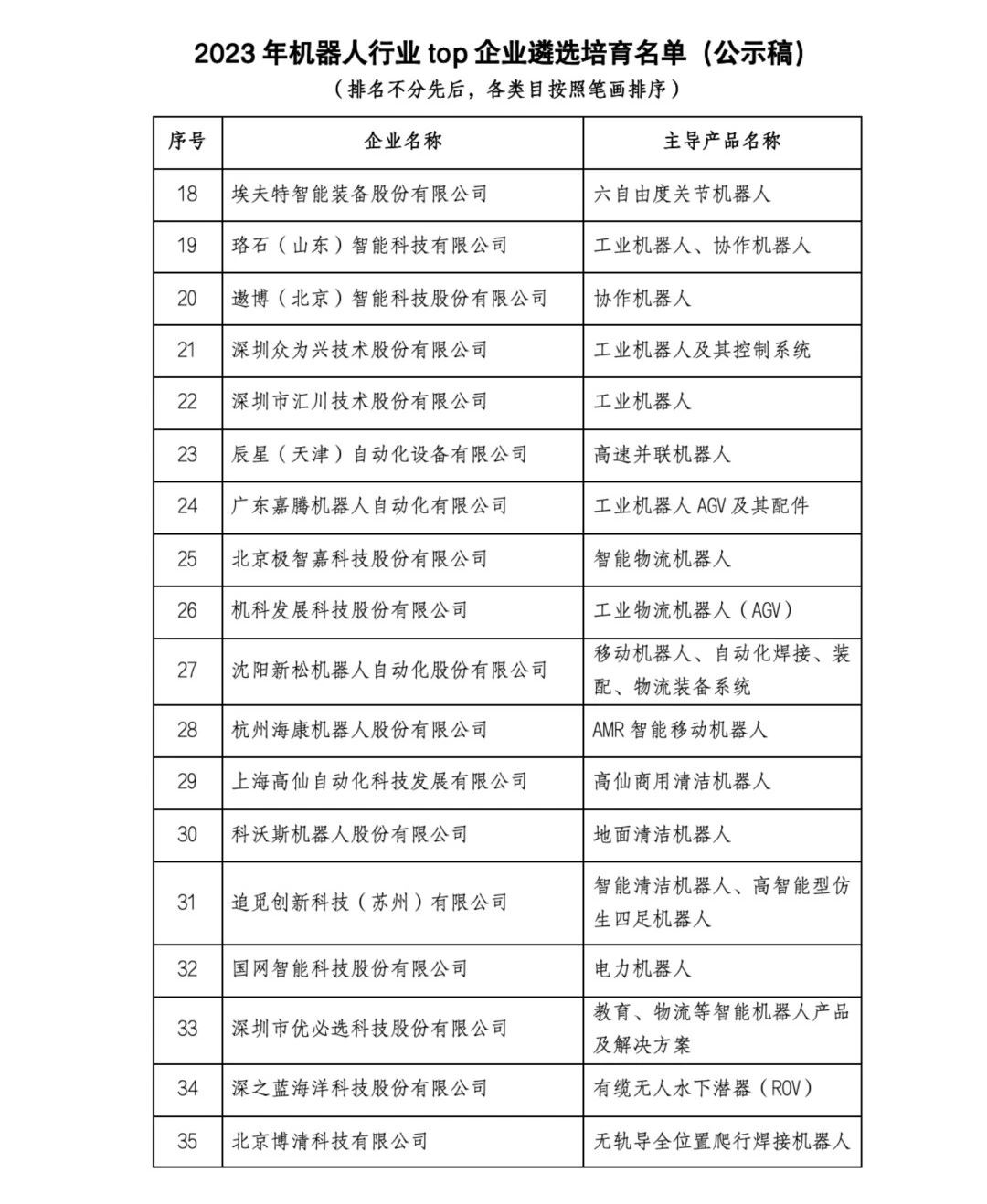 附件1:2023机器人行业TOP企业遴选培育名单(公示稿)