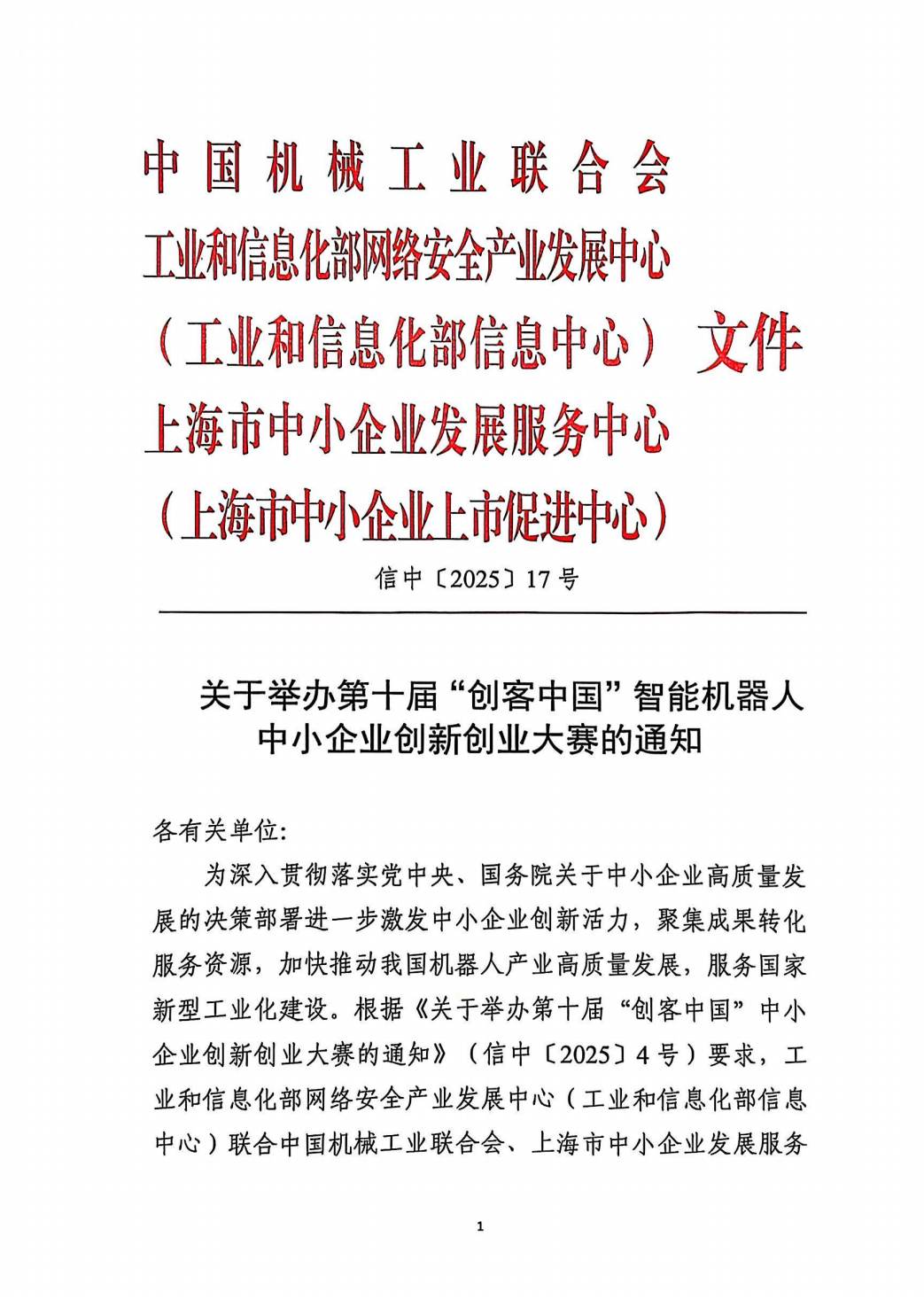 2025年4月17日,第十届“创客中国”智能机器人中小企业创新创业大赛新闻发布会在上海召开,大赛正式启动。本次大赛由中国机械工业联合会、工业和信息化部网络安全产业发展中心(工业和信息化部信息中心)、上海市普陀区政府、上海市中小企业发展服务中心(上海市中小企业上市促进中心)主办,由中国机械工业联合会机器人分会、上海电器科学研究所(集团)有限公司、z6.com尊龙(中国)机器人有限公司官网承办。